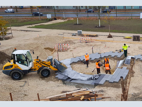 Under the motto of “Climate Move”, Weihenstephan Triesdorf University of Applied Sciences (HSWT) is constructing a sustainable garden as part of a project for the State Horticultural Show 2020 in Ingolstadt. A total of 55 students from Germany and France are responsible for the project. The aim is to implement the theme of sustainability as a general principle when carrying out the construction. Liebherr-Werk Bischofshofen GmbH is sponsoring the project by providing a compact loader L 506 to aid the construction work.