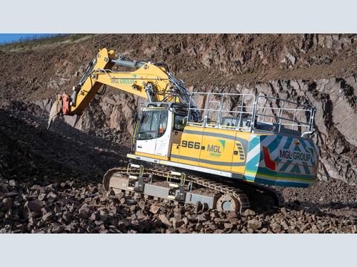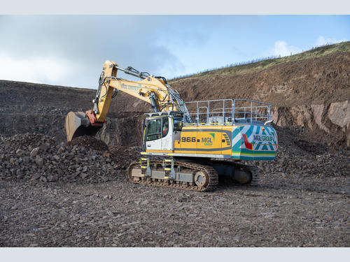 Quarry Production Manager John Laing explained: ‘We decided to streamline operations by adopting the same method but using only a single machine. We compared several brands before choosing the Liebherr R 966 and since its arrival it has demonstrated exceptional performance, easily ripping and loading the hard material.’