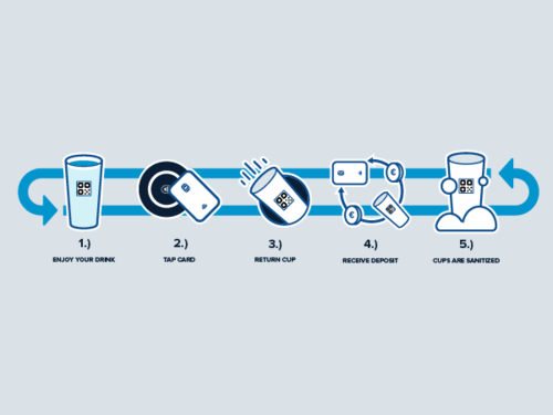• Consumers receive drinks in reusable cups for a refundable €0.60 deposit
