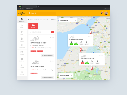 Available as an option for the first time, mixed fleet functionality allows the integration of other equipment brands’ machines into JCB LiveLink - centralising the entire fleets’ telematics data into one place. This saves time and complication by eradicating the need for multiple systems. The machine sharing feature also allows the user to give visibility of equipment data to other users and organisations, which can be ideal for rental environments.