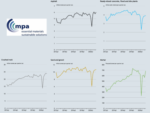 The latest quarterly survey from the Mineral Products Association (MPA) shows that in recent months the industry has supplied the highest quarterly volumes of materials such as aggregates and asphalt in more than 12 years.