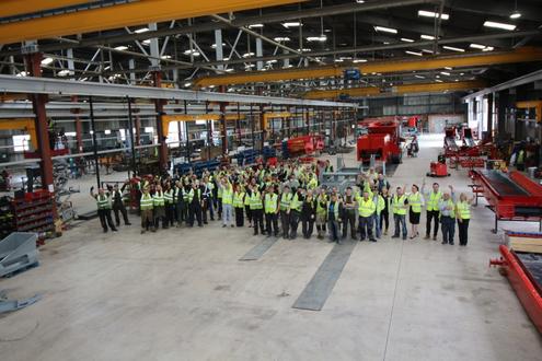 Louise and Shane then walked us around the site. Louise commented “We manufacture everything from scratch here and for efficiency we’ve clearly divided the building into cutting and folding, welding and fabrication and final assembly. We have recently installed twenty new cranes, a new laser cutter, a new plasma cutter and a new shot-blasting area. Here all the major parts of a machine are put through the shot-blasting process to take them back to a ‘raw’ steel finish in preparation for painting. We also have a brand new paint facility here and oven so that all the parts can come straight out of the painting process into the double oven.”