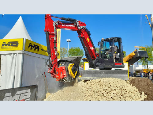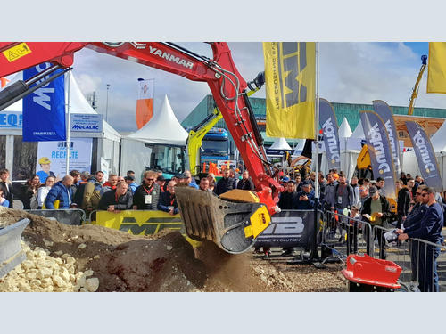 Today, being independent on the job site is essential to be competitive. The solution is to optimize the sites by using the machines already there. All you need is a heavy machine, regardless of its weight, an operator, an MB Crusher attachment and a visit to the stand E 043 HALL 6 and demo area EXT6 C 094 where MB CRUSHER has exhibited for the first time in full the range of equipment dedicated to compact machines, at Intermat 2024 in Paris. The show reflected the potential of the machines working as if they were on a job site. At the demo area outside, an MB-L120 crusher bucket, an MB-HDS312 padding bucket and a MB-G500 sorting grapple has been working all exhibition long mounted on a Yanmar excavator and Lehnhoff quick coupler.