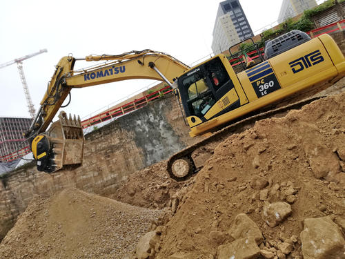 The site had very sandy terrain so it was important to separate the sand from the rock base and it was done with the MB-S23 screener installed on the Komatsu PC360. Separating the fine portion from the limestone rock, which was then reduced with the BF120.4 jaw crusher installed on the same Komatsu PC360. The hardcore obtained was used for the peripheral embankments and paving. This process eliminated trucks in and out of the site and the re-use of recycled material assisted in preserving natural resources.
