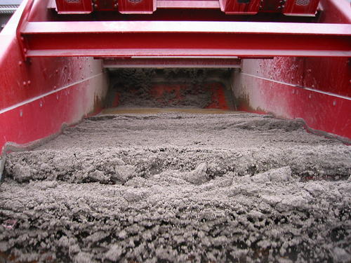 The product-sized sand is discharged out the bottom of the Hydrocyclones and onto the Dewatering Screen. The Dewatering Screen removes excess water from the sand and discharges a drip-free product onto a stacking conveyor for stockpiling. The Dewatering Screen throughs — the water removed from the sand and any additional fine material that pass through the Dewatering Screen media — flow into the sump to mix with the slurry feed to the Hydrocyclones.