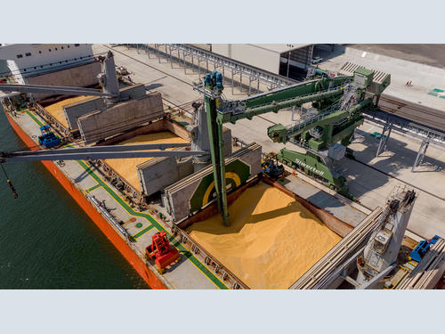 “The unloader minimizes terminal operating costs. In addition, there are close-to-zero dust emissions, no disturbing noises, and no spillage,” Linares notes. “This means no cargo losses, which is particularly important when it comes to expensive commodities such as corn, which is currently priced in the region of USD 350 per metric ton and DDGs at USD 650 per metric ton.”