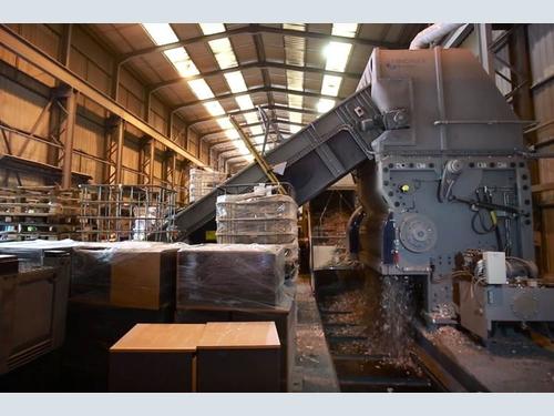 The Micromat is a powerful single-shaft shredder, which Lindner has rigorously designed for low energy consumption plus high productivity. Thanks to Lindner‘s modular system, it can be flexibly configured for its particular purpose. The Micromat 2000 installed at Russell Richardson is equipped with a powerful 132 kW motor that allows an efficient rotor speed of 265 rpm and thus ensures a high throughput. The respective belt drive and, connected with this, the maintenance-free safety clutch, reliably prevent foreign matter that may be contained in the delivered material from causing damage to the drive unit. In addition, the system is equipped with a dust collector to comply with the stringent health and safety requirements, while a combination of spark detector and fire extinguishing system helps to prevent fires.