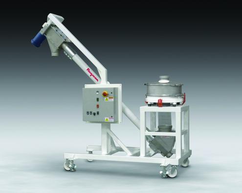 A new BEV-CON™ Mobile Flexible Screw Conveyor with Round Vibratory Screener removes oversize particles and reduces soft agglomerates before conveying on-size bulk materials from powders and large pellets that flow freely, to non-free-flowing products that pack, cake, seize or smear due to compression or frictional heat.