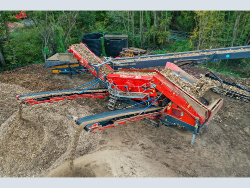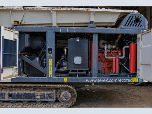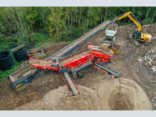 Wood waste is also the domain of machinery from the Molson Green range but this time the initial processing work is undertaken by a Terex Ecotec TDS 820 slow speed shredder. The TDS 820 runs two twin 2m long shafts and its design features and build quality have impressed the team at Ace Liftaway massively since its introduction to site. “We operated a shredder from another manufacturer previously and we were constantly having issues with the shaft jamming and breaking. This has not been the issue with the Terex.” Russell comments. Thanks to the self-cleaning 7-7-4 shaft design, hydrostatic drive and independent gearboxes for each shaft, ACE Liftaway are able to customise the shredding program to reduce potential wrapping of material on the shafts and maximise up time and production. The material produced from the shredder is fed onto another Terex Finlay 883+ inclined screen with an 80mm top deck and 10mm bottom deck. Anything oversize is recirculated back into the shredder via a large tracked conveyor. “The products we get from the wood recycling usually goes into the manufacture of Stirling board and chipboard. We will recycle 100% of our wood waste entering the site.” Russell explains.