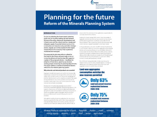 The Mineral Products Association has today published a policy paper calling for reform of the mineral planning system to ensure future supply to support housing and infrastructure construction, manufacturing and other key strategic sectors of the economy.