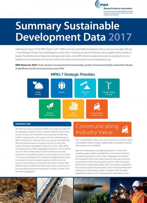 The Mineral Products Association (MPA) has published its Sustainable Development (SD) Summary Data for 2017 which covers a range of data from 2016. Following the launch of the MPA Charter in 2017, the data is now aligned with MPA’s 7 main strategic priorities and the corresponding objectives and targets.