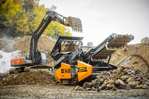 The multi-purpose separator SPLITTER loosens, separates and doses various materials without requiring a pre-treatment. Mixed construction waste can be treated as well as stones and soil, metal scrap, slag and landfill residues. The Splitter is equally suited for mobile and stationary applications.