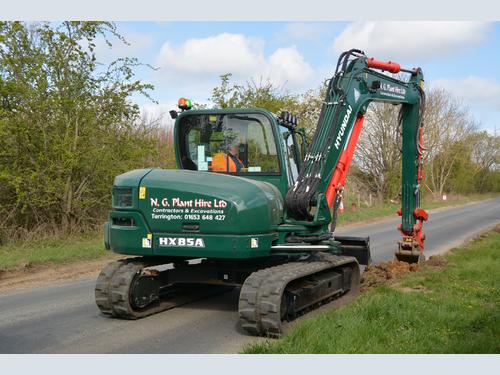 Nigel is currently working with his new Hyundai on a rural road closure job in North Yorkshire, where the N G Plant team were excavating the verges by the side of the carriageway to the specified depth, refilling with compacted 6F2 material before dressing back over with topsoil, this is done to strengthen to road edge where it may have failed previously.