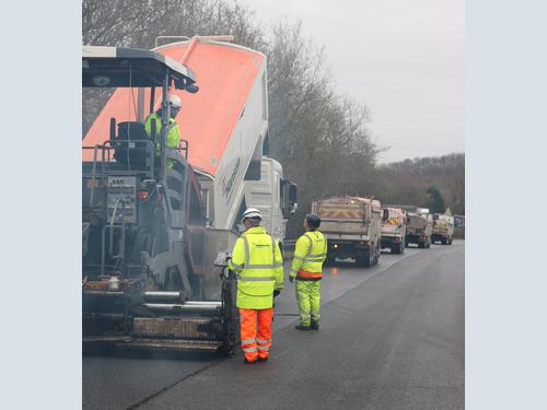 What makes the pavement trialed on the A30 unique is that it is an innovative lower carbon asphalt that incorporates polymer-modified bitumen containing biogenic material.