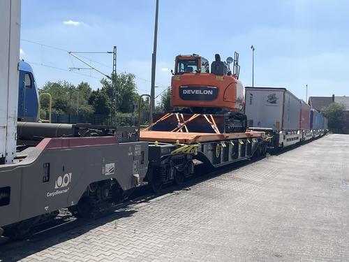 The new rail service for large pieces of plant now being offered by Van der Vlist Logistics B.V. currently operates from the Netherlands and Belgium to several terminals in Italy, with Germany and Scandinavia to follow next. Thanks to daily train departures, transit times remain short and reliable. The first successful transport of the Develon DX140LCR-7 was completed in close cooperation with Cargobeamer, enabling smooth intermodal transitions and consistent scheduling.