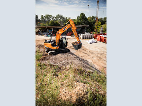 The DX27Z-7 mini-excavator is a new size class for the Doosan line-up. The rear view camera allows an operator to navigate a full 360 degrees on jobsites. Other features include a 1092 mm standard thumb-ready arm and a 300 mm rubber track undercarriage. A machine of this stature — just 1524 mm wide — can fit in many confined job sites. The DoosanCONNECT® Telematics system comes standard, making it easy to remotely monitor and maintain the machine. Standard attachments for the DX27Z-7 mini-excavator include a bucket, quick coupler and thumb.
