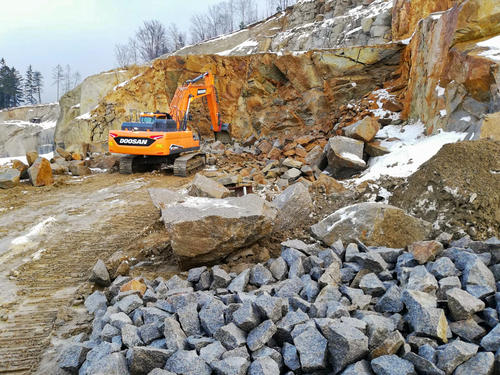 A new Doosan DX350LC-7 Stage V compliant excavator has added increased power and fuel efficiency for working with heavy blocks of granite at the Ruprechtice quarry in the Czech Republic.