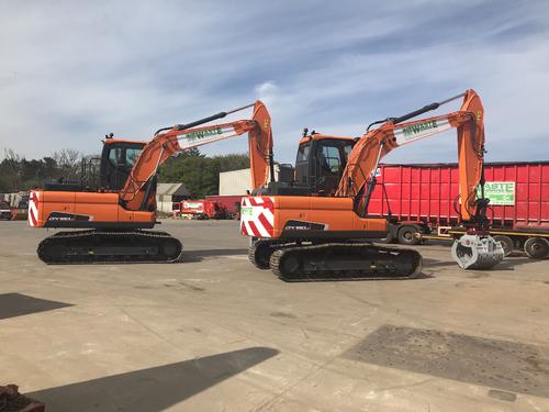 EIS Waste Services Ltd, based in Aberdeen in Scotland, has purchased two new Doosan DX180LC-5 18 tonne crawler excavators from Balgownie, the local Authorised Doosan dealer, with headquarters in Inverurie in Aberdeenshire.