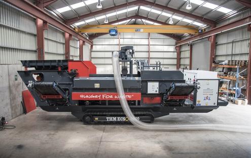 The THM ECS-2000 with onboard EH-81 Airhog is a 4 way split unit capable of processing up to 40TPH, removing superlight contaminants, recovering the ferrous and non ferrous metals and the residual product.