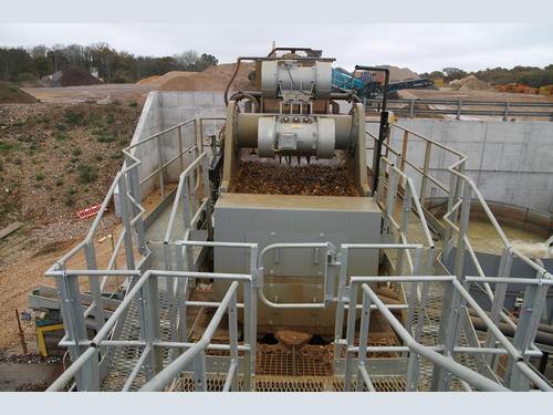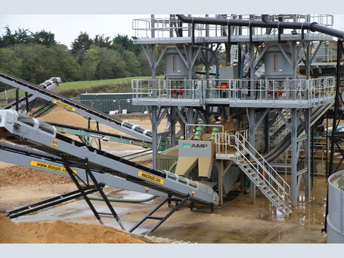John Collins – Technical Director, DUO Equipment, commented, “With NMS requiring to process alternate sharply contrasting feeds we based the design around the highly successful Aggrescrub™ 150 log washer and as there were quantities of organic contaminants in the feed, AMP twin TAK Hydro Classifiers were included to remove them from the fines fraction and provide a guaranteed clean, contaminant free material for the NMS Concrete Plants.”