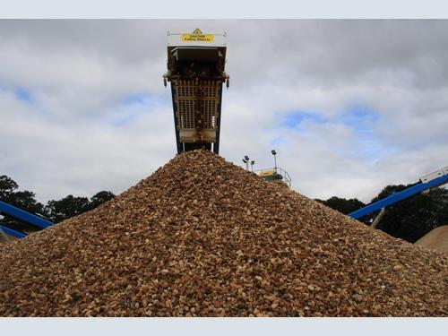 The scrubbed aggregates are discharged onto an integrated triple deck sizing screen to produce the 4-10mm, 10-20mm and 20-40mm aggregate products. These are then stockpiled via three 15m stockpile conveyors with 650mm belts.