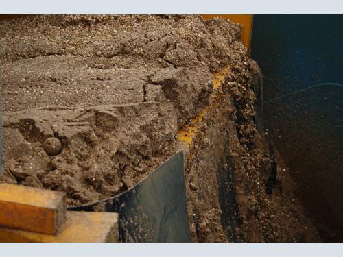 Material is delivered to the plant via the M14 feed hopper with 150mm grid spacings. CDE conducted extensive material testing prior to specifying the plant and the vast majority of material being processed is in the minus 63mm range with 80% typically passing 20mm.