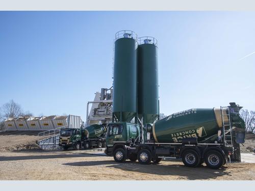 The high-output plant is producing wet batched concrete for distribution throughout Essex by a fleet of 10 Scania tippers, servicing customer requirements ranging from single loads up to the largest pours.
