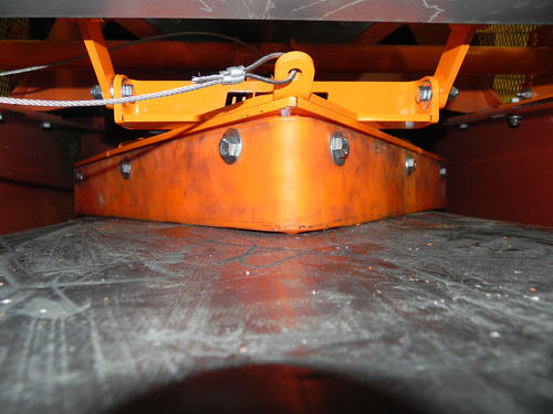 The Martin V-Plow HD prevents tail pulleys from becoming fouled and damaged by spillage traveling on the return side of the conveyor belt.  Fugitive material commonly migrates from the cargo side to the return side during normal operation.  If this spillage reaches the tail pulley, two things can happen.  One is lumps getting caught between the pulley and the belt, gouging and damaging both the belt and pulley face.  The other is spillage being crushed by the pressure between the pulley and the belt, adhering to the pulley face and the return side of the belt, causing pulley slippage and fouling of idlers along the system.