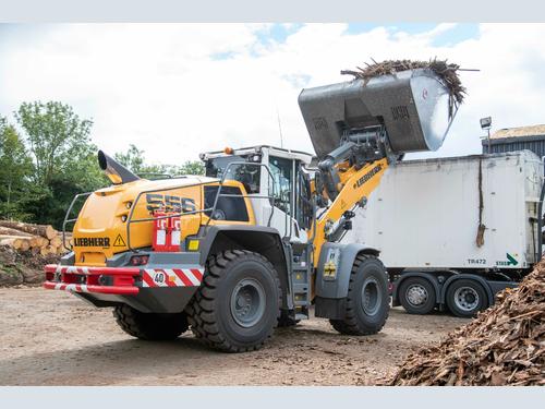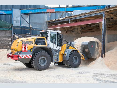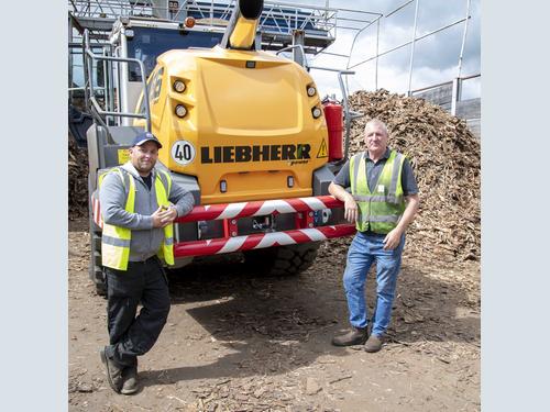 A Liebherr wheeled loader is the critical link at the back end of a timber processing operation feeding the hungry biomass market……
