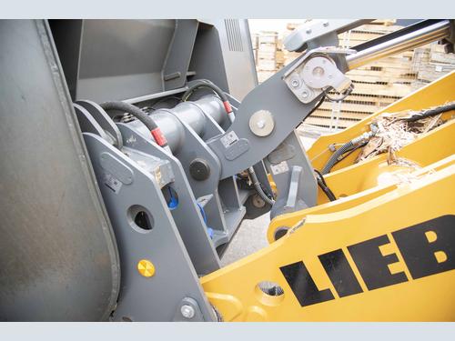 The 20-tonne loader is fitted with Liebherr’s industrial arm package which, at 2.9m long, allows for a 3.9m load-over height. The industrial linkage is said to give far greater control and performance over a parallel arm or Z-Bar linkage in this type of application. The machine is also equipped with Scott’s Viby high-tip bucket that was used on their outgoing machine. With a capacity of 7m3, that attachment is well within the capabilities of the newcomer and is joined to the loader via a Liebherr industrial quick coupler.