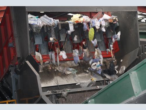 It begins with an automatic bag opener which receives the mixed incoming materials and passes them out in a metered flow to a pre-sort section which optimises the plant’s downstream operation. Thereafter, a 3m x 11m trommel splits the waste into three streams, from which the fines/organics enter their own dedicated line comprising a flip flop screen and advanced air separation technology.