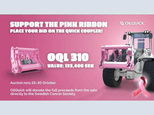 Henrik Sonerud, CEO of OilQuick AB: “We are proud to take an even bigger step in supporting the Pink Ribbon campaign this year by auctioning our specially designed pink OQL quick coupler, valued at SEK 133,400. Almost everyone knows someone affected by cancer, and through this initiative we hope to make a difference. We are donating 100% of the auction proceeds directly to the Swedish Cancer Society and their invaluable work.”