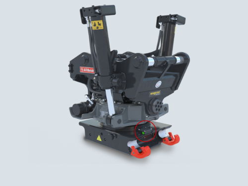OQLS guides the operator through the entire attachment switching process, standardises operation of the locking function and provides the operator with information via a cab panel. OQLS is available for two quick couplers in ”Sandwich versions”, i.e. above and below the tiltrotator.