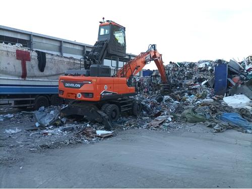 Specialising in the collection and sorting of household and industrial waste, Pizzorno Environnement, the international group based in Draguignan in France, has just purchased from 510 Location, an agent for the Develon dealer, HMD in Arles, a new 24.5 tonne Develon DX230WMH-7 material handler for its sorting and recovery centre in Le Muy, one of the most modern in the country.