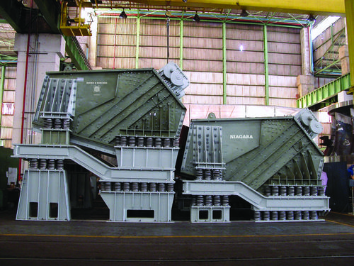 Haver & Boecker Niagara offers the Niagara XL-Class vibrating screen, which combines advanced exciter drive technology with a wide body to offer producers high-capacity screening action at up to 15,000 tons per hour. The XL-Class is the largest exciter-driven machine in the industry. It is ideal for high tonnage rates, such as iron ore and oil sands applications. Each XL-Class machine is custom-designed to its specific application using Finite Element Analysis (FEA) to predict the structural behavior of a vibrating screen. With more than 15 years of FEA and experimental measurement experience — and nearly 400 high-capacity vibrating screens supplied to the global market — Haver & Boecker Niagara is able to provide state-of-the-art high-capacity vibrating screens that offer easy operation, low maintenance and unmatched reliability.