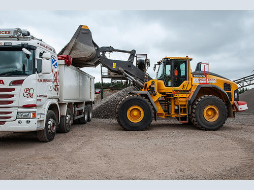 The new L150H is the company’s largest loading shovel to date which was displayed at this year’s ScotPlant event. The machine is in charge of all the main activities at the Mountcastle pit including digging at the face, feeding the plant and loading out road going wagons. “We specified the machine with boom suspension for long load and carry work but also, with the larger capacity bucket, we can turn vehicles around much quicker too,” says Peter. “Another important point for us was opting for the Volvo Load Assist feature and this is really paying dividends towards the machine’s efficiency on site. There is less than 1% discrepancy between what the machine is loading to, to what is weighed on the weigh-bridge and this saves significant time when loading vehicles, forgoing the need for them to top up or discard excess loads which makes our production flow faster.”