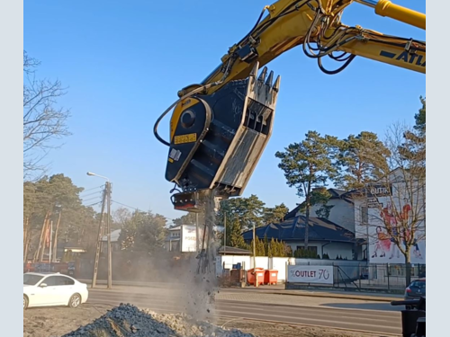 Maintenance of the railway that connects Warsaw to the nearby Polish regions provided the customer with many unused old sleepers. He bought a mobile jaw crusher bucket BF70.2 for his Atlas 1604 excavator and began to reduce the railway sleepers, obtaining crushed material that can be used as a sub-base for the ballast.