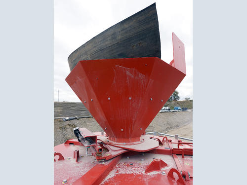 The aim was to achieve a final product that was as compatible as possible with the washed concrete sand in Saaldorf in terms of grain form and grain size distribution. The decision was eventually taken in favour of the SBM V8 vertical impact crusher: Just like larger V-crushers with outputs of up to 160 t/h, it was particularly developed to produce sand and to make poorly shaped fines more cubic. With vertical feeding (feed sizes 35/40 mm), the patented SBM inlet control and the electric drive with frequency converter-controlled rotor speed as the key control parameter, SBM vertical shaft impact crushers can be integrated into existing plants very easily and simply and are also available as mobile skid-mounted plants. In the standard design, crushing takes place in the material cushion or ‘“material bed”' thanks to the high energy input of the especially developed high-speed rotors. The SBM inlet control with filling level monitoring at the material hopper minimises the pull effect even at constantly high rotor speeds, thereby ensuring that the material bed is maintained and guaranteeing uniform quality, low wear costs, and low dust emissions under full or partial load.