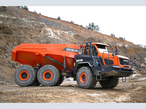 The market-leading DA30-7 and DA45-7 ADTs offer payloads of 28 tonne and 41 tonne, respectively. These models feature an articulation hinge positioned behind the turning ring to provide equal weight distribution to the front axle even during maximum steer articulation. This combined with a free-swinging rear tandem bogie ensures equal distribution of weight to each wheel and guarantees permanent 6-wheel contact and drive for equal power distribution and excellent performance particularly on difficult terrains such as soft ground, uneven surfaces, very steep slopes, tight turns or a combination of all of these difficult conditions.