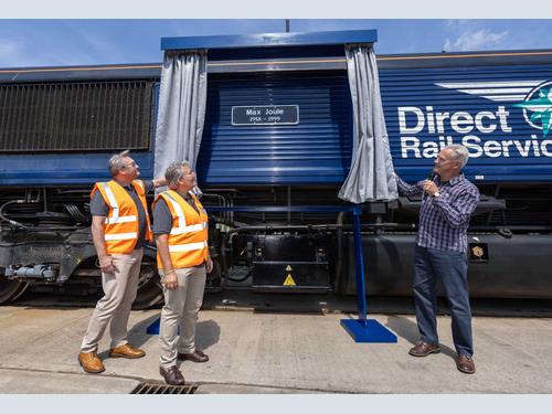 There were also two very important locomotive namings at the event. The first saw “Max Joule” unveiled on Class 66 locomotive 66422, a tribute to one of DRS’s founders and its Managing Director until his tragic death in 1999.