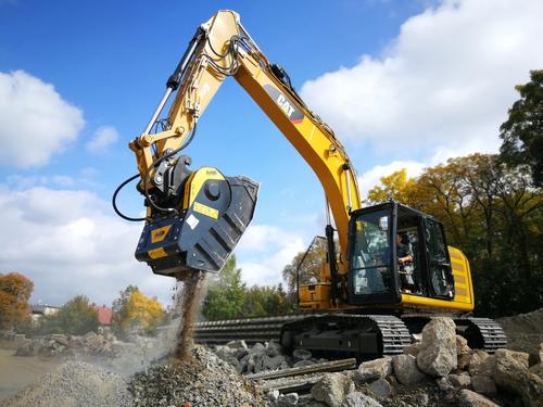 With MB Crusher units, poles, reinforced concrete, and sleepers are crushed and recycled directly on site...
