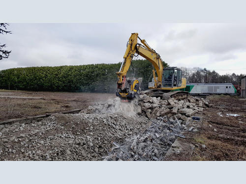 The problem was disposing of old sleepers they kept in storage – renting a stationary crusher was too expensive and complicated. Bringing the material to a recycling center meant high hauling fees. The solution was under their noses: they used the BF70.2 crusher bucket, attached to their operating machine, crushed the old sleepers on the spot. Therefore, eliminating rental and transportation costs.