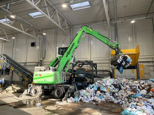 Before purchasing the SENNEBOGEN 817 E material handler, the waste management company used a wheel loader for sorting and loading tasks. However, the space required for manoeuvring and loading the shredder, as well as poor visibility, made daily work difficult. Due to the new building and the changed space conditions in the hall, different working heights were possible - a machine with more reach was required.