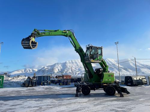 Icy cold with temperatures as low as -20 degrees, surrounded by glaciers, fjords and the northern lights. Spitsbergen is one of the northernmost places on earth, only 1,300 km from the North Pole. Here, the SENNEBOGEN material handler 817 E works in recycling operations under particularly challenging conditions. Despite the extreme weather and the Arctic climate, the 18-tonner reliably supports the Longyearbyen Miljostasjon waste management company in disposing of 2,000 t of waste a year. The machine was sold and delivered by local service partner Volvo Maskin AS.