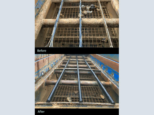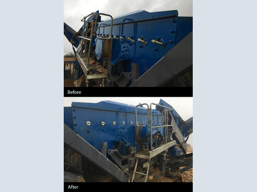 SCS undertook the rectification work on this installation, firstly repairs were carried out to the longitudinal camber bars and the exterior side angle wedges were removed. New rubber screen cloths, capping rubber and side tension clamps were installed, and for greater security the tensioning wedges and pins were replaced with screen bolts to ensure the mats remain tensioned correctly whilst in operation.