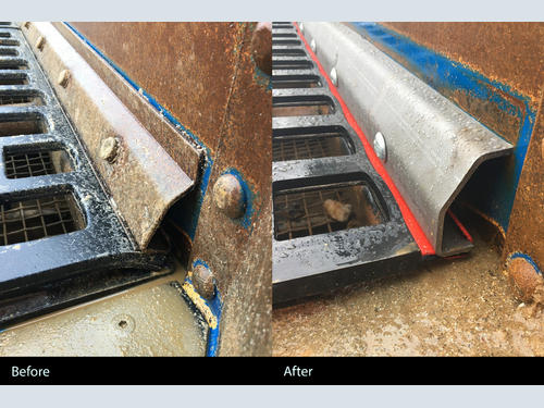 After investigation by phone, email and a site visit, the root cause was identified. There were two main contributing factors, namely incorrect profile side tension clamps and exterior angle wedges. These were causing the side irons to rotate, thus lifting the underside of the rubber screen cloth off the longitudinal camber bars, this was therefore not allowing the rubber screen cloths to be tensioned correctly.  The incorrect tension meant the rubber screen cloths were flapping up and down, and had worn through from the underside, this movement lead to capping rubber being destroyed and to some damage to the longitudinal camber bars.