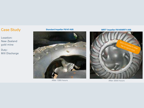 This technology has already proven its worth in the field, such as at Blackham Resources’ Matilda Gold Mine in Western Australia, where the installation of Warman® WRT® technology more than doubled impeller wear life in a demanding application involving abrasive, highly viscous slurry. The new impeller and throatbush reduced total ownership costs for the pump by AU$27,000 per year due to the parts’ higher efficiency and longer wear life.