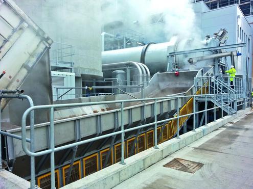 28 tonne tipping trucks and 35 tonne front end loaders before conveying the material onto a screw conveyor for incineration.