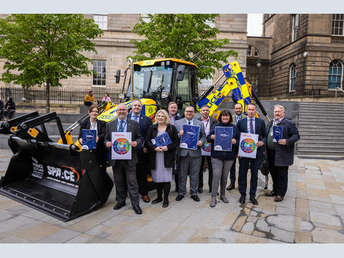 Callum Mackintosh, President of the SPOA, launched the first crime prevention campaign from SPAACE in Edinburgh on 22nd May in a Police Scotland liveried JCB 3CX. Partners of SPAACE, including Police Scotland, also attended the launch at St James Quarter.