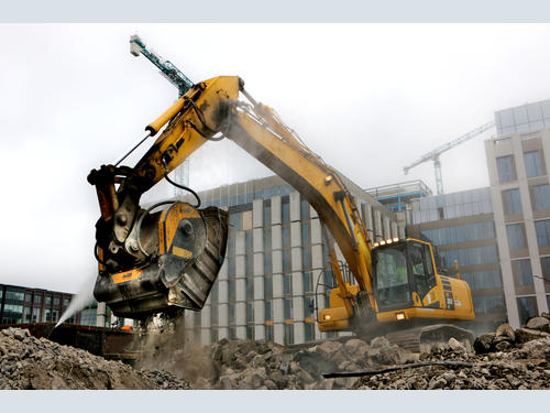 The reclamation company on the job at the Dublin seaport, installed a BF120.4 crusher bucket on their excavator to crush demolition waste. They doubled their advantages: no transportation and disposal costs, and they recovered the material on the spot; in this case, the material was reused to construct a new eight-story building. They overcame another obstacle with the crusher bucket: reaching the construction site using access routes consisting of old and narrow alleys. Since the unit was installed on the excavator, MB’s crusher bucket arrived on site quickly and without incurring additional costs.